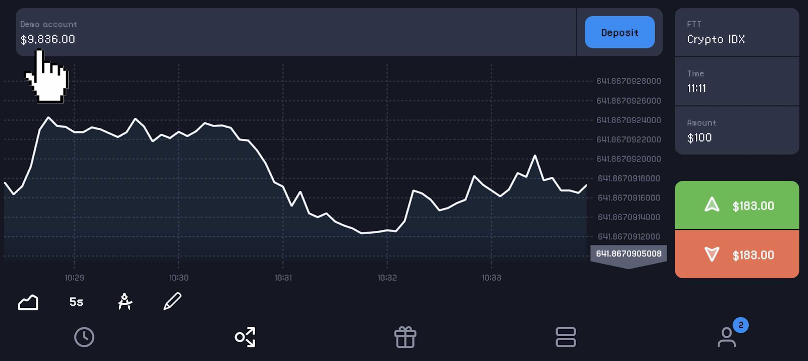 Please note that the number of trades with the demo account is limited to 30 before you make your first deposit. After that, it becomes unlimited.