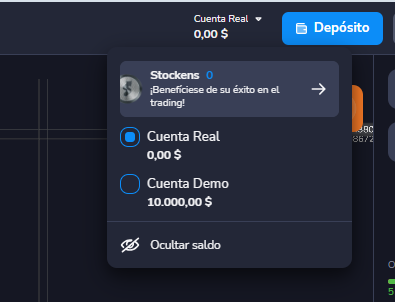 - Seleccione su tipo de cuenta en la esquina superior de la plataforma