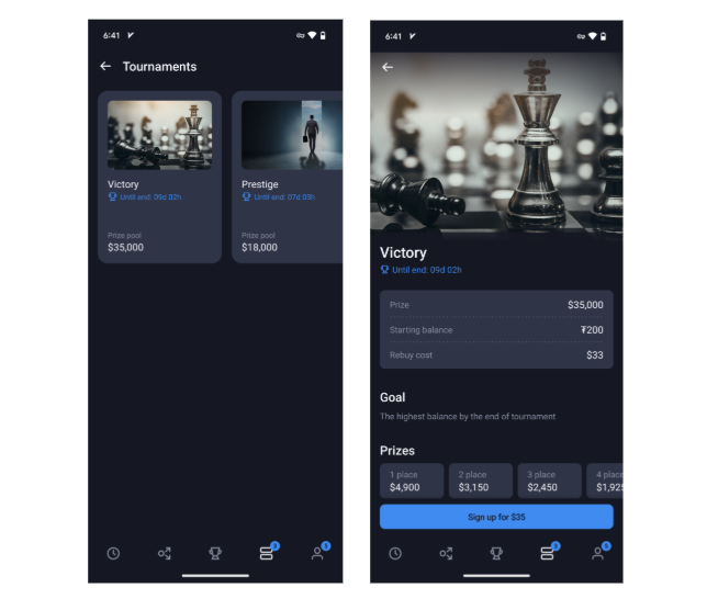Tenga en cuenta: Los torneos en la aplicación móvil solo están disponibles después de realizar el primer depósito.