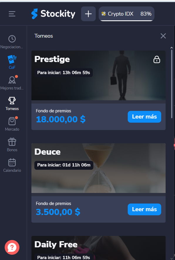 - Haga clic en el ícono de Torneo ubicado en la esquina superior izquierda de la plataforma.