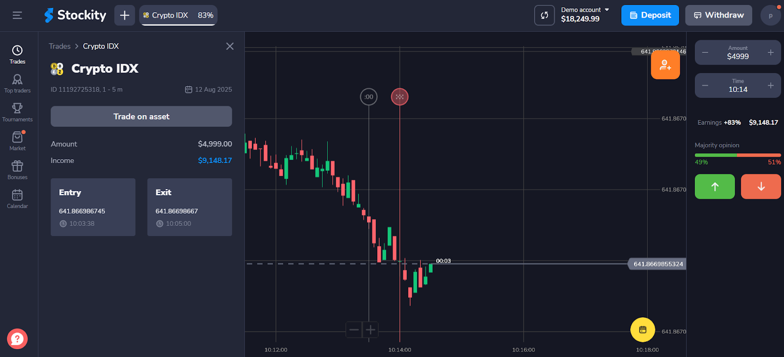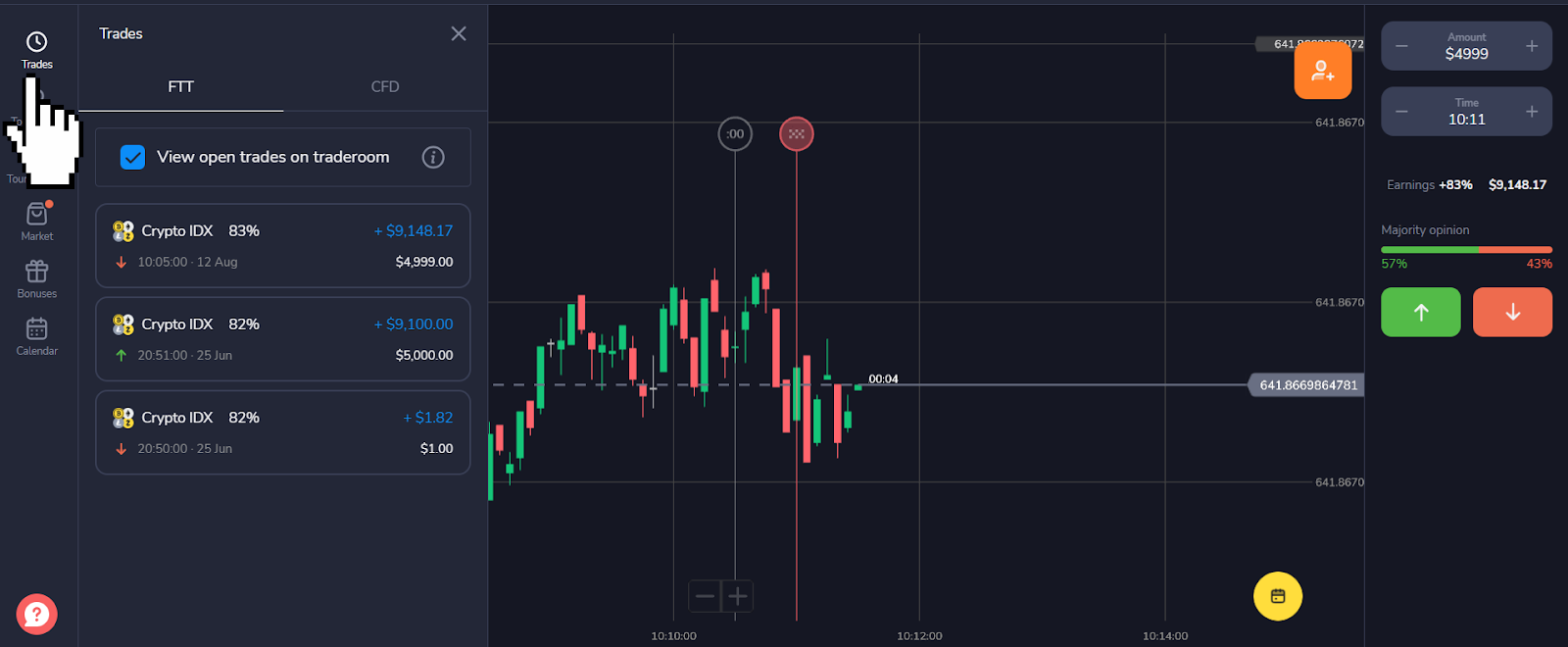 Haga clic en el ícono del "Reloj" en la parte inferior de la plataforma para ver su historial de operaciones.