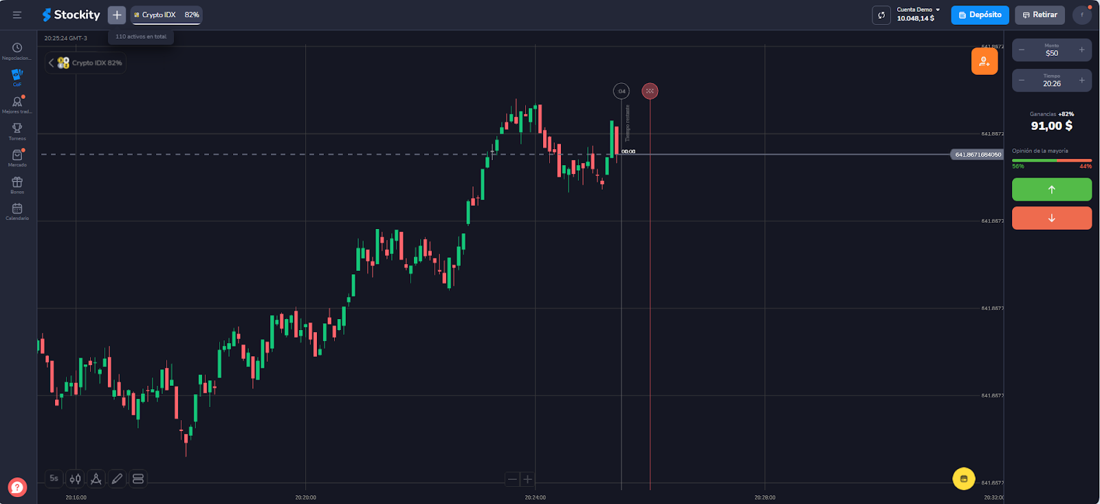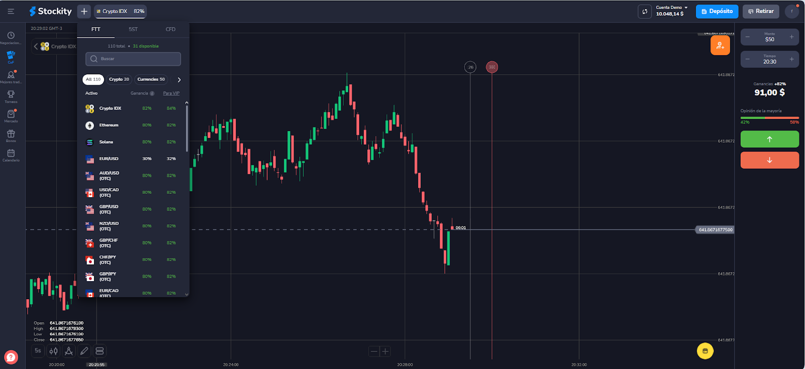 Haga clic en el activo con el que desee operar, y este se añadirá junto a sus otros activos.