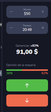 La opinión mayoritaria le muestra qué decisiones (alcista o bajista) están tomando otros traders en el momento actual sobre el activo seleccionado.