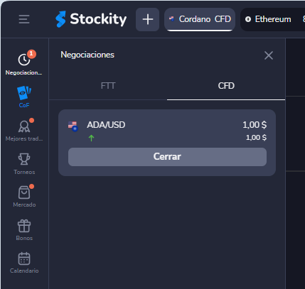 - Siga la operación en la sección “Negociaciones”, pestaña “CFD”.