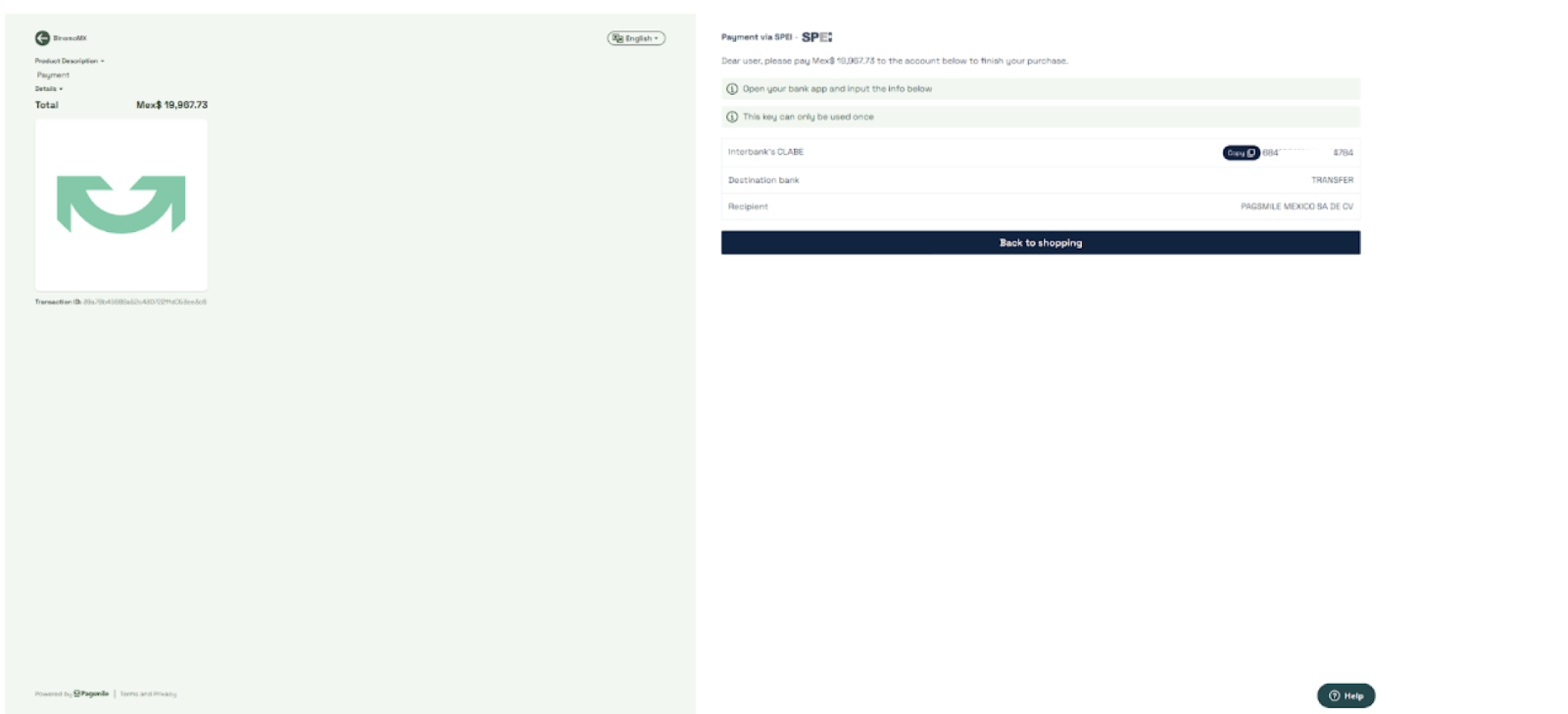 4. Realice la transferencia usando los datos de pago que aparecen (número de cuenta, CLABE/beneficiario, banco, recipiente). Asegúrese de copiar los datos exactamente e incluir la referencia de pago requerida.