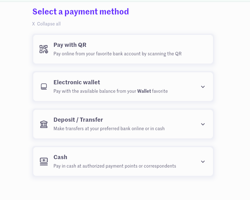 Paso 2: Seleccione la opción Yape; la plataforma cargará la pantalla específica para pagos por Yape.