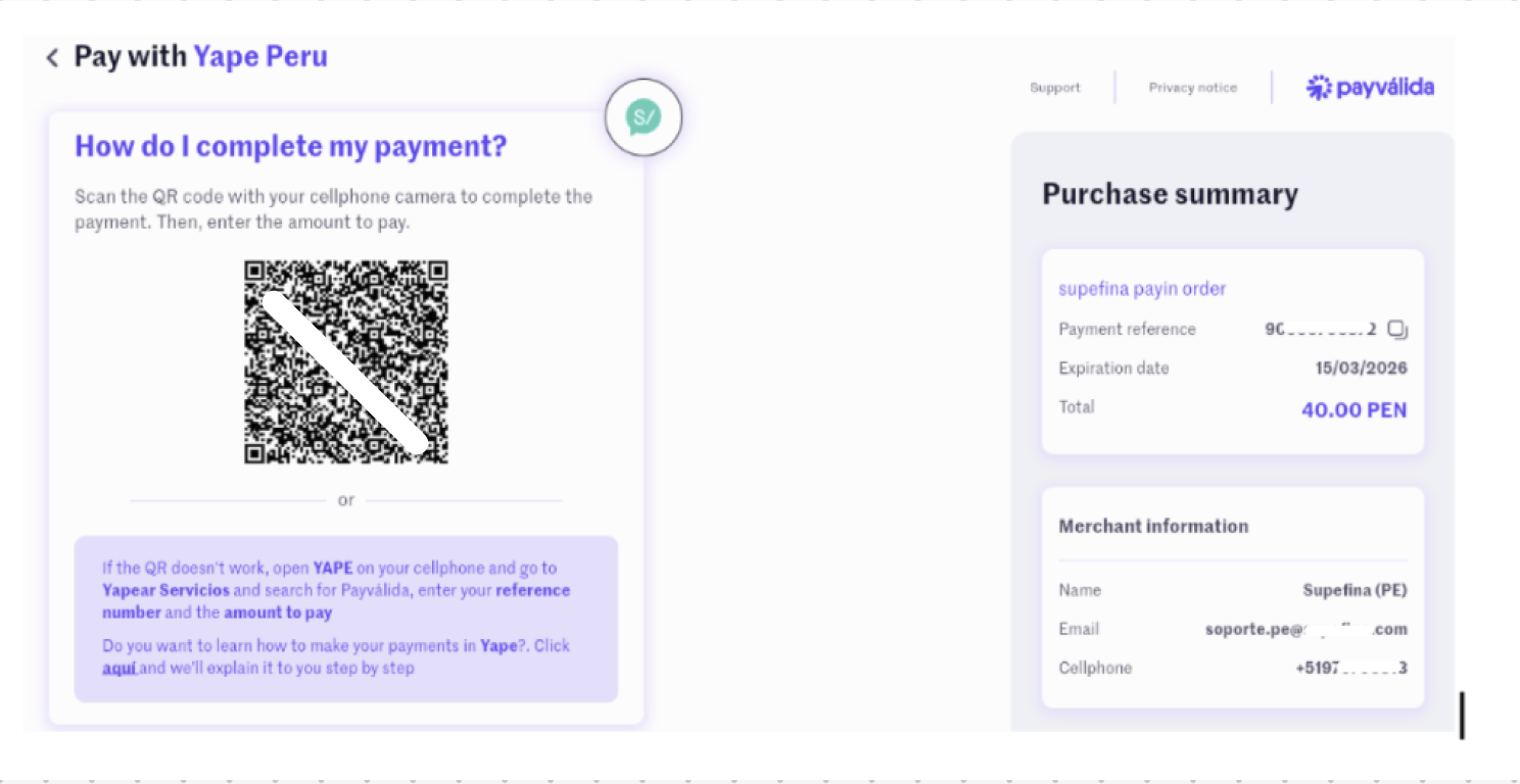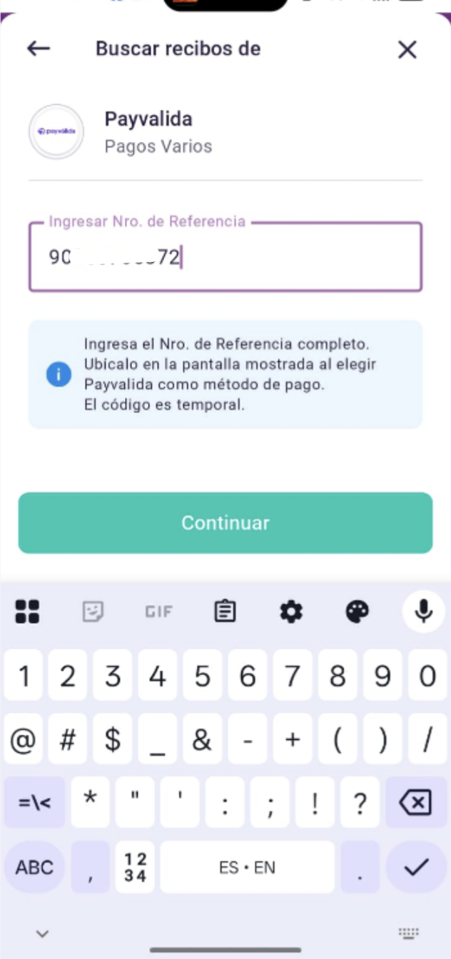 Paso 9: En PayValida ingrese el número de requerimiento que aparece en la página de Stockity (la referencia mostrada en la pantalla de depósito). Revise que no haya espacios ni errores al copiar el número. Si el número es correcto, Yape mostrará la pantalla de pago correspondiente.