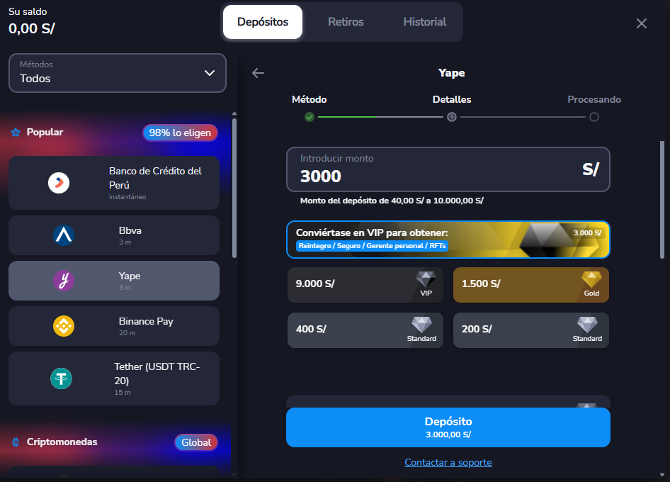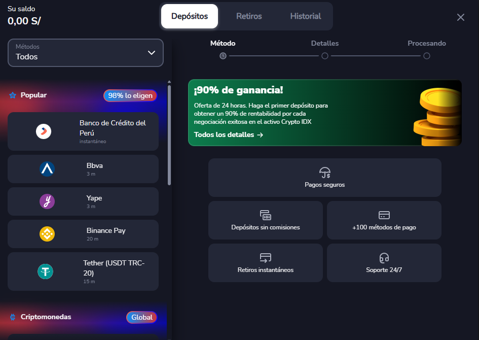 Paso 1: Vaya a la opción Depósito en la plataforma; se mostrará la pantalla inicial de depósitos.
