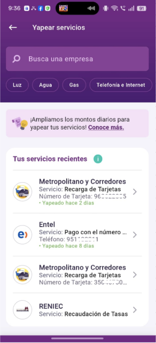 Paso 7: En Yape, acceda a la sección YapeServicios (o Servicios) desde el menú principal —esta es la ruta alternativa cuando el QR falla—. Asegúrese de que su app Yape esté actualizada y que su cuenta esté activa.
